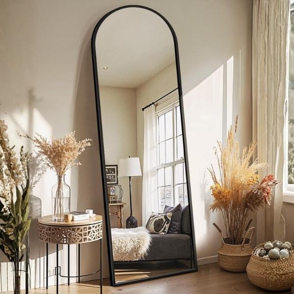 - Prywot Arched Standing Full Length Mirror Aluminum Frame for Bedroom