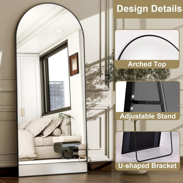 This full length mirror brings modern arch design with tough metal build. It makes small areas look larger and takes daily use. Lean it for quick looks before work or hang to free floor. Safe glass handles bumps well in busy homes or gyms. Simple upgrade for any spot.